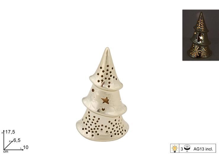 ALBERO CERAMICA 17cm ORO DECORO NATALE C/LUCE