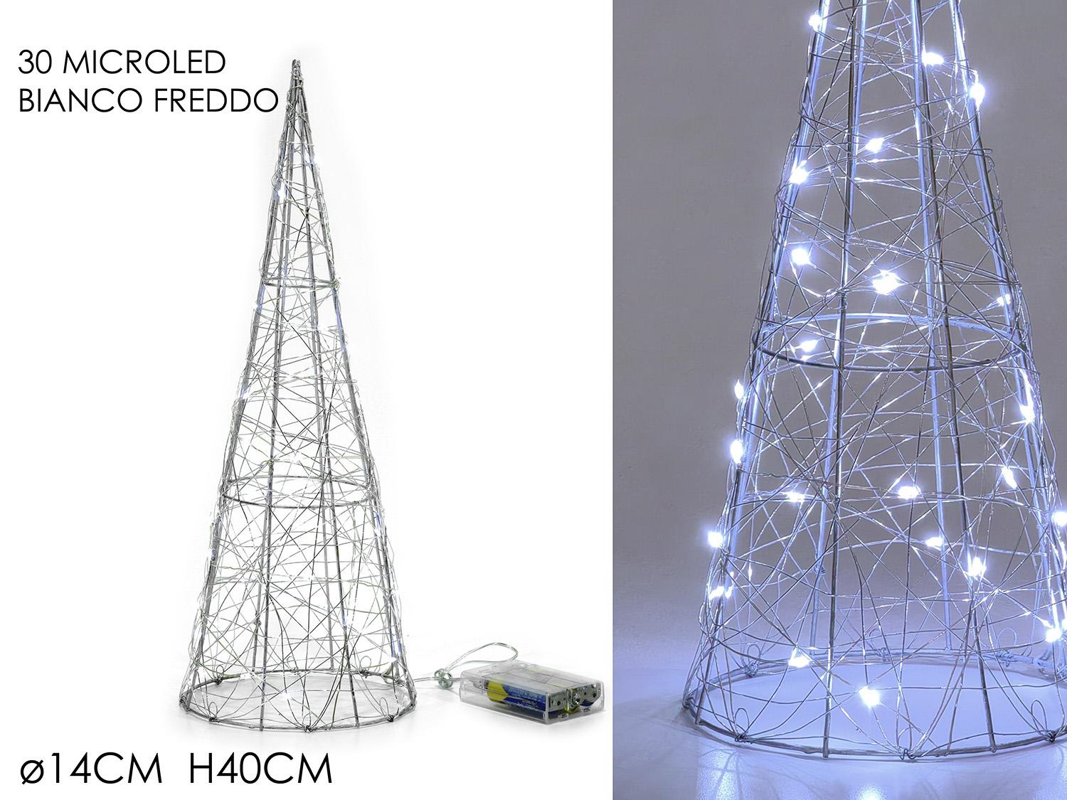 ALBERO CONO ARGENTO 40cm 30 LED BIANCO FREDDO