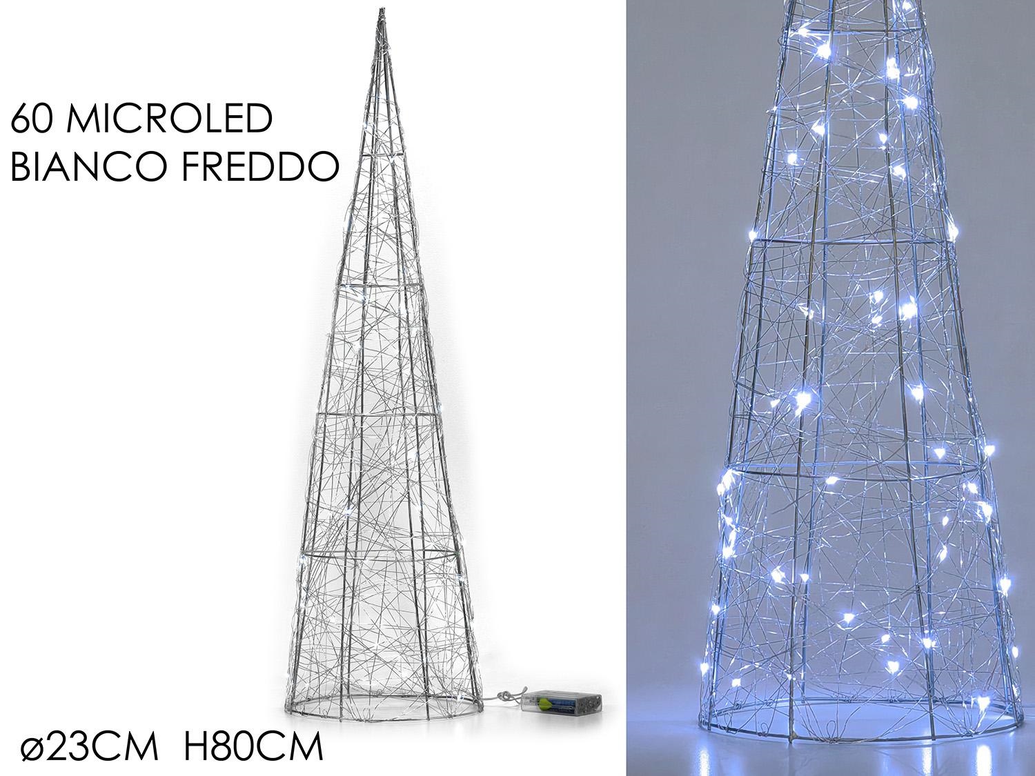 ALBERO CONO ARGENTO 80cm 60 LED BIANCO FREDDO