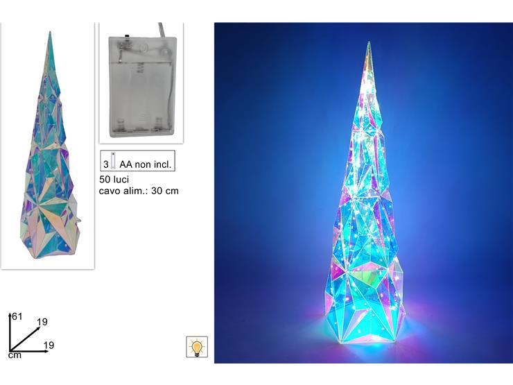 ALBERO CONO DIAMANTE RAINBOW 61cm C/50 LED BATTERIE