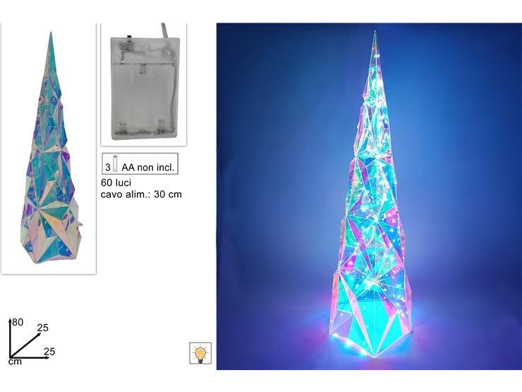 ALBERO CONO DIAMANTE RAINBOW 80cm C/60 LED BATTERIE