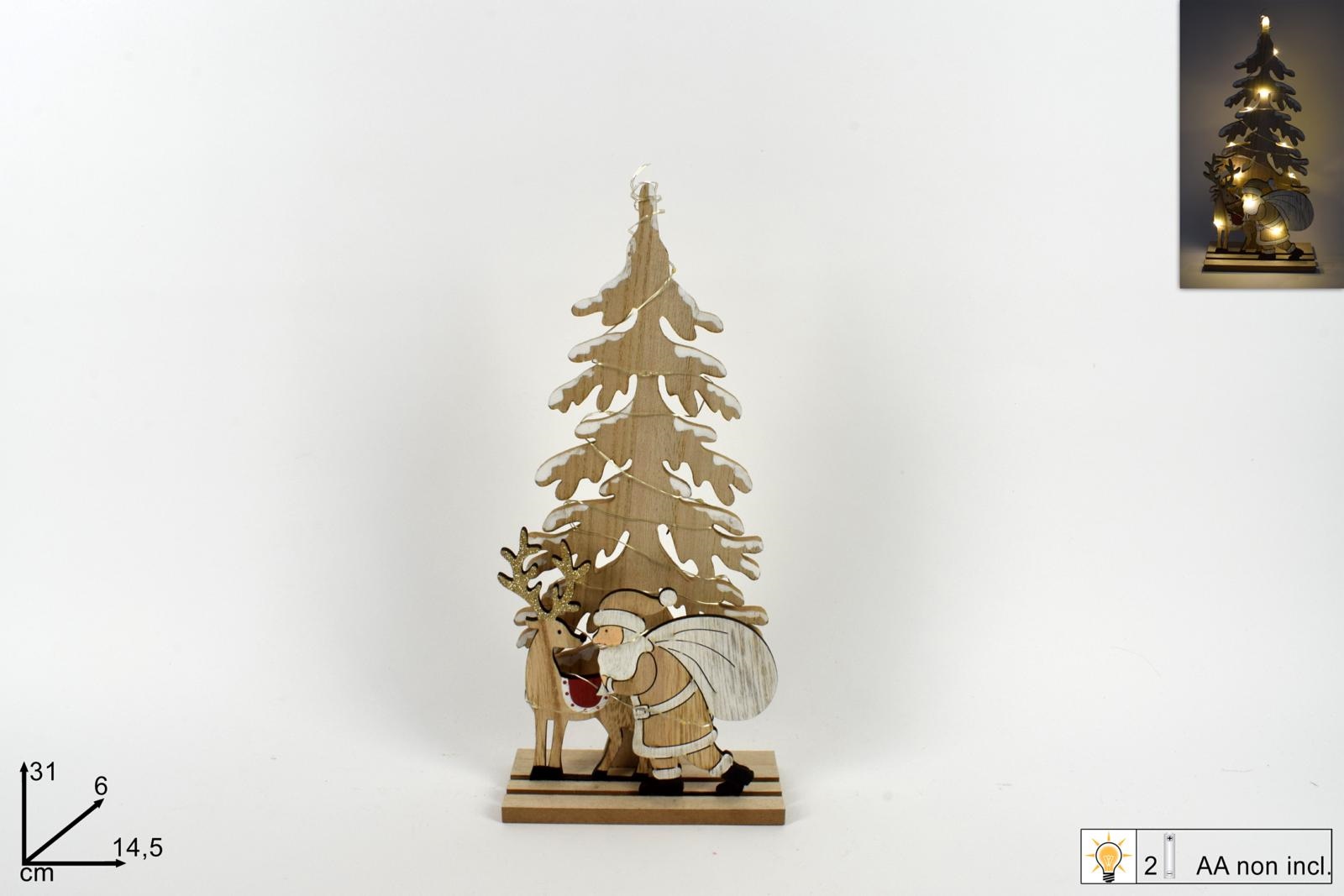 ALBERO LEGNO C/BABBO 31cm C/LUCE