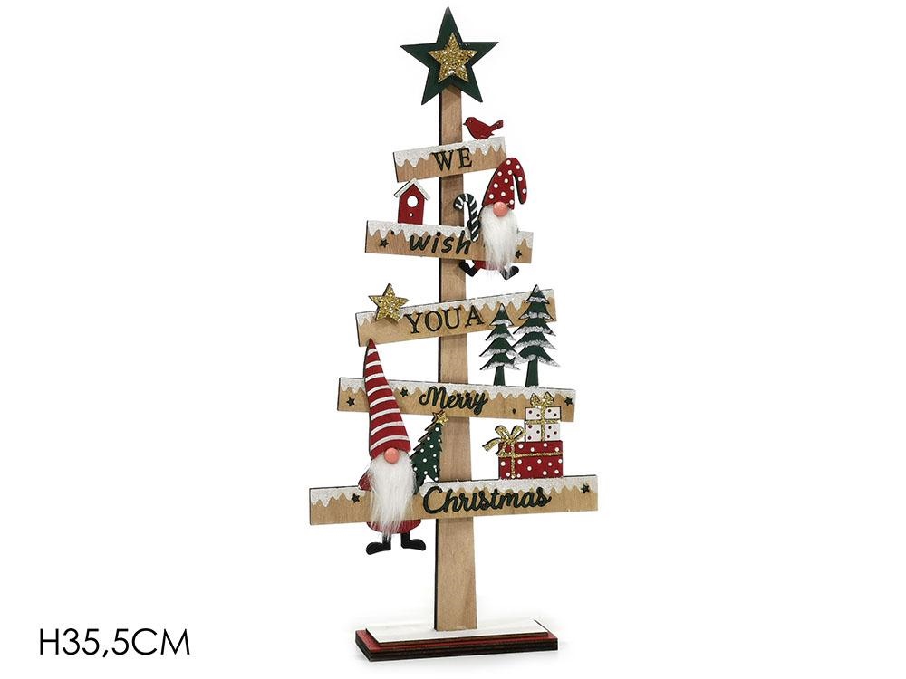ALBERO LEGNO C/GNOMO ROSSO 35cm