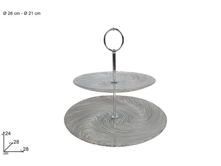 ALZATINA 2 PIANI VETRO VORTICE SILVER 28/21cm