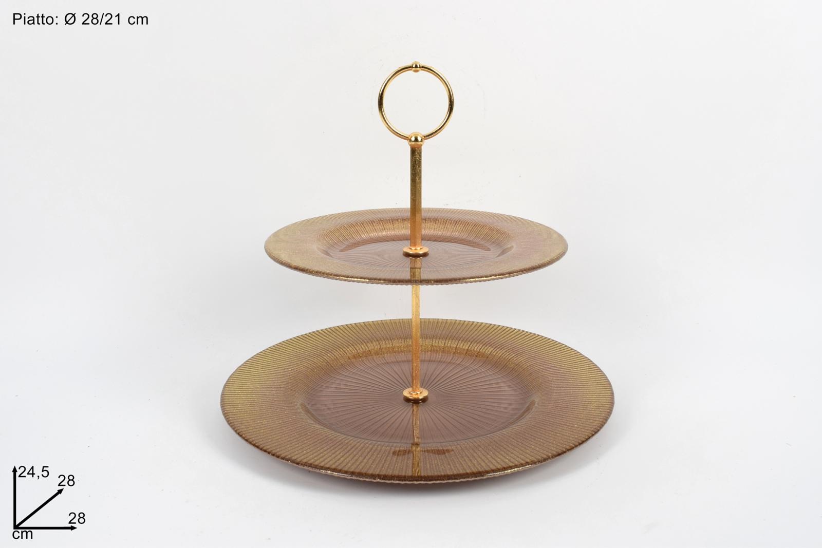 ALZATINA VETRO 2 PIANI MARRONE GLITTER ORO
