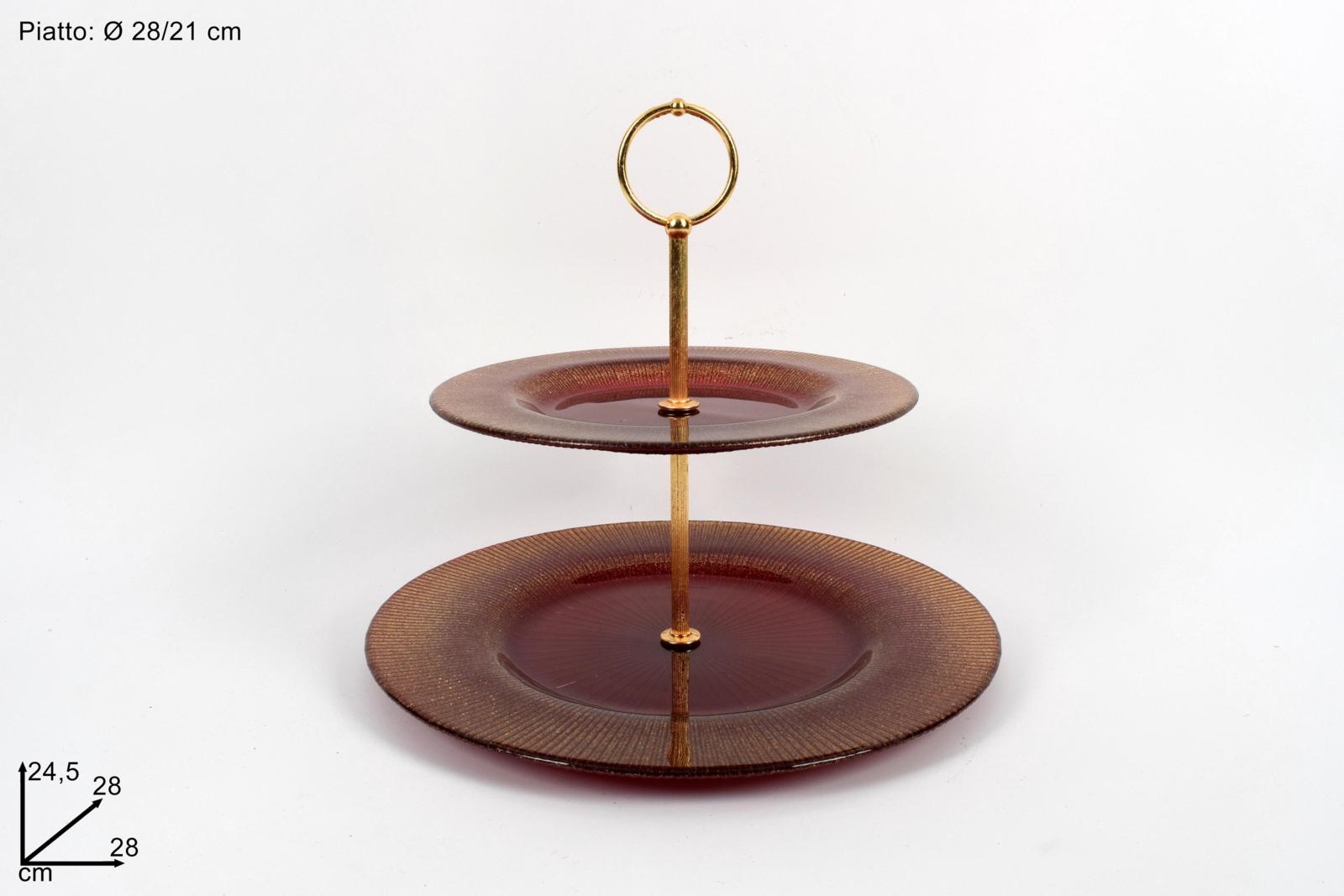 ALZATINA VETRO 2 PIANI ROSSA GLITTER ORO