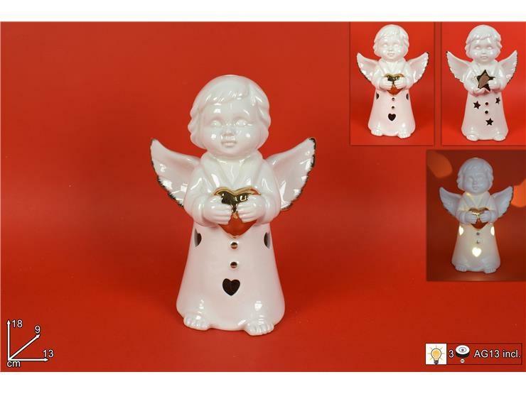 ANGELO DECORAZIONE DORATA C/LUCE 18cm