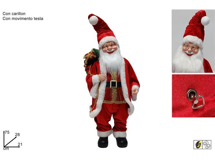 BABBO NATALE CARILLON 75cm ROSSO C/SACCO