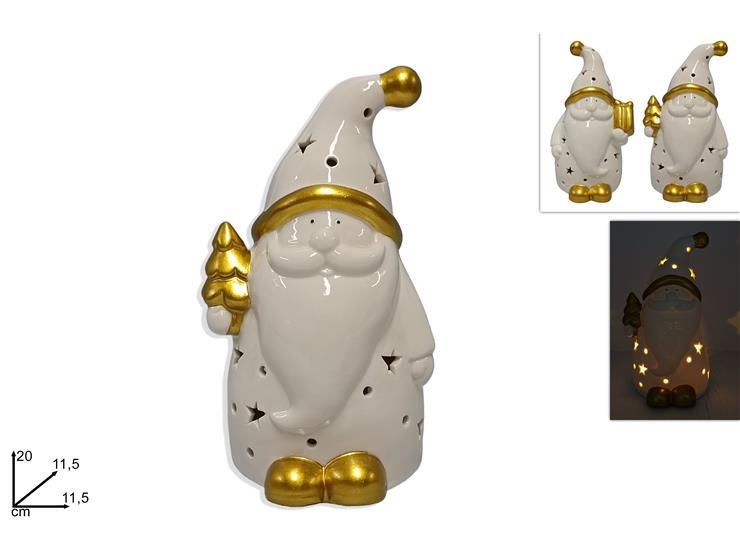 BABBO NATALE CERAMICA BIANCA/ORO 20cm C/LUCE