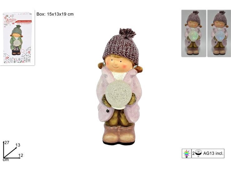 BAMBINA C/CAPPELLO ROSA E PALLA NEVE C/LUCE