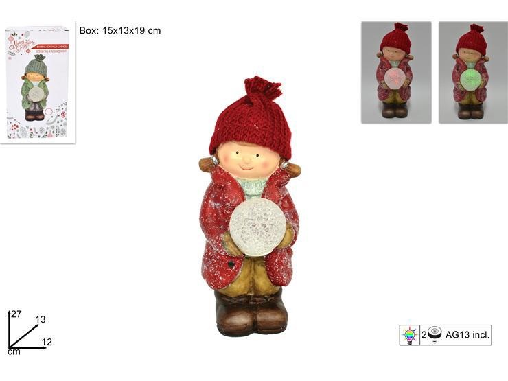 BAMBINA C/CAPPELLO ROSSO E PALLA NEVE C/LUCE