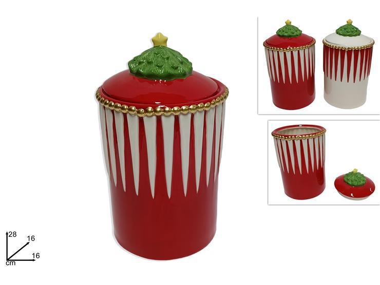 BARATTOLO CERAMICA 28cm ROSSO/BIANCO C/ALBERELLO