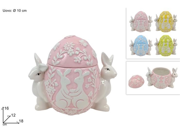 BARATTOLO UOVO C/CONIGLI 10cm ASS.