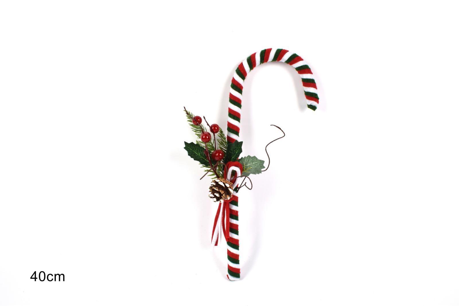 BASTONE CANDITO C/PIGNE E BACCHE 40cm