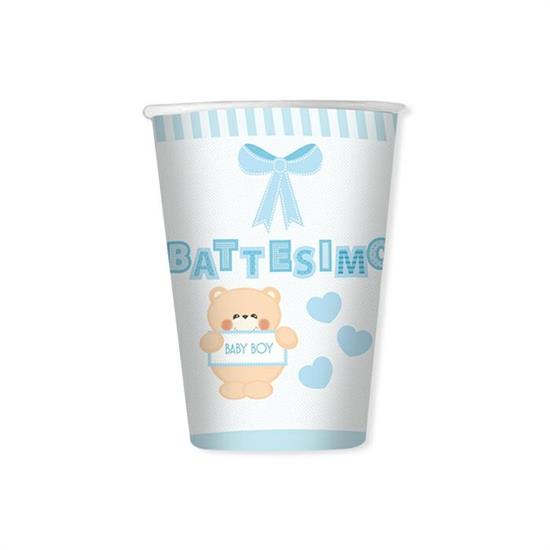 BICCHIERI BATTESIMO TEDDY CELESTE 8pz.