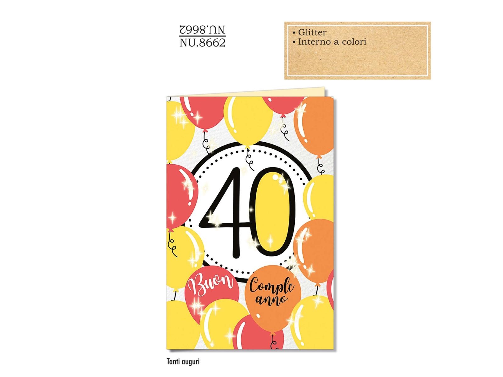 BIGLIETTO 40 ANNI NUMERI E PALLONCINI