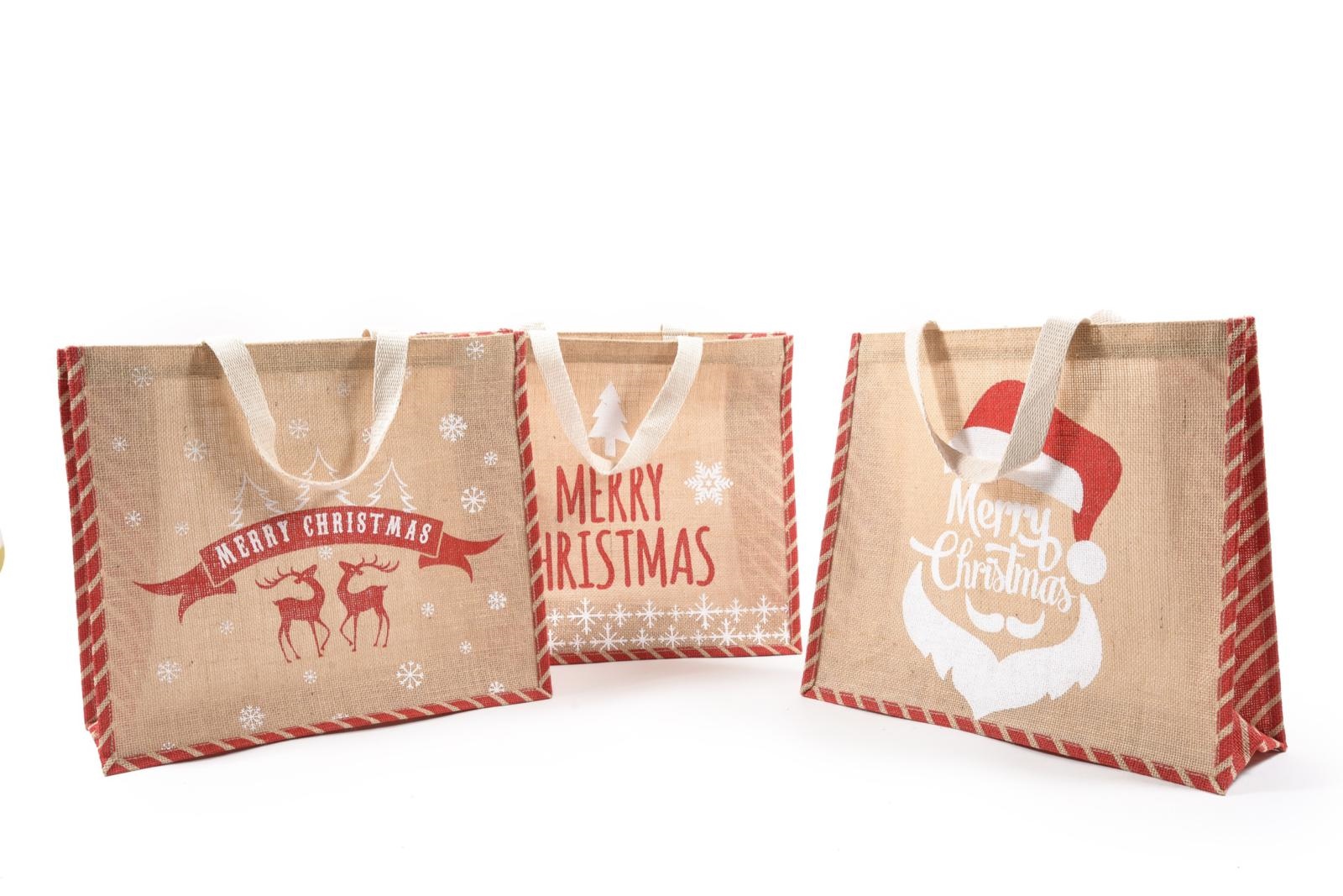 BORSA NATALE JUTA C/MANICI 40x35x15 ASS.
