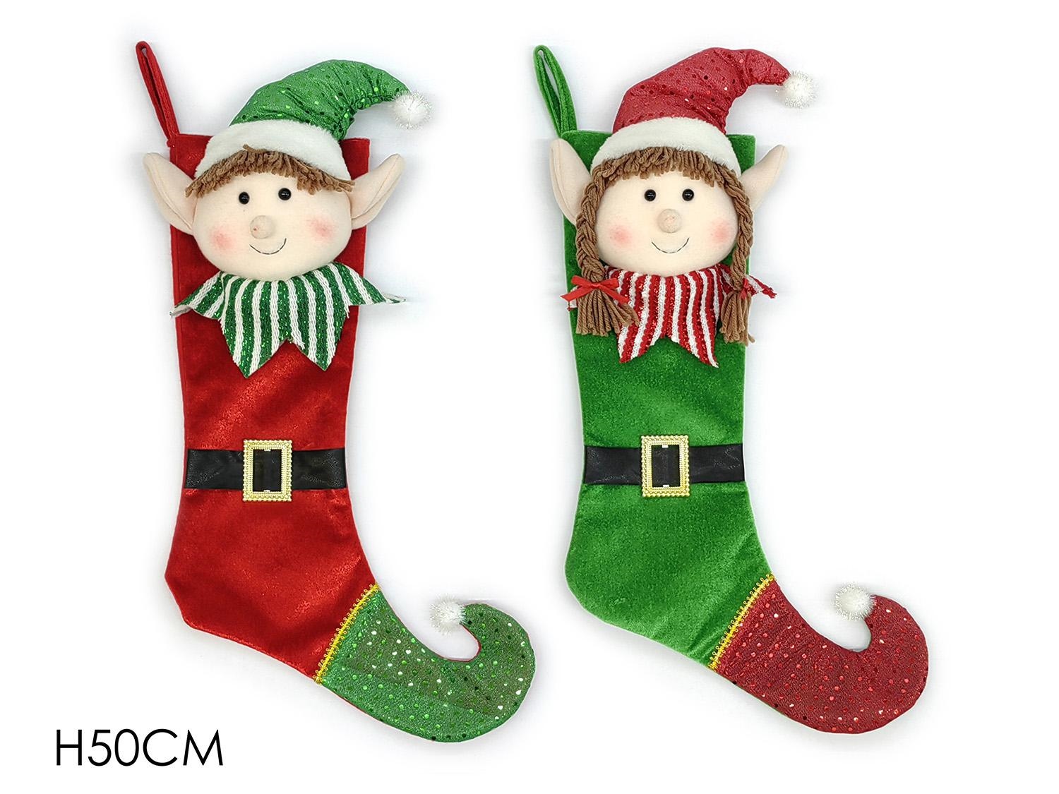 CALZA C/ELFO 50cm ROSSO/VERDE