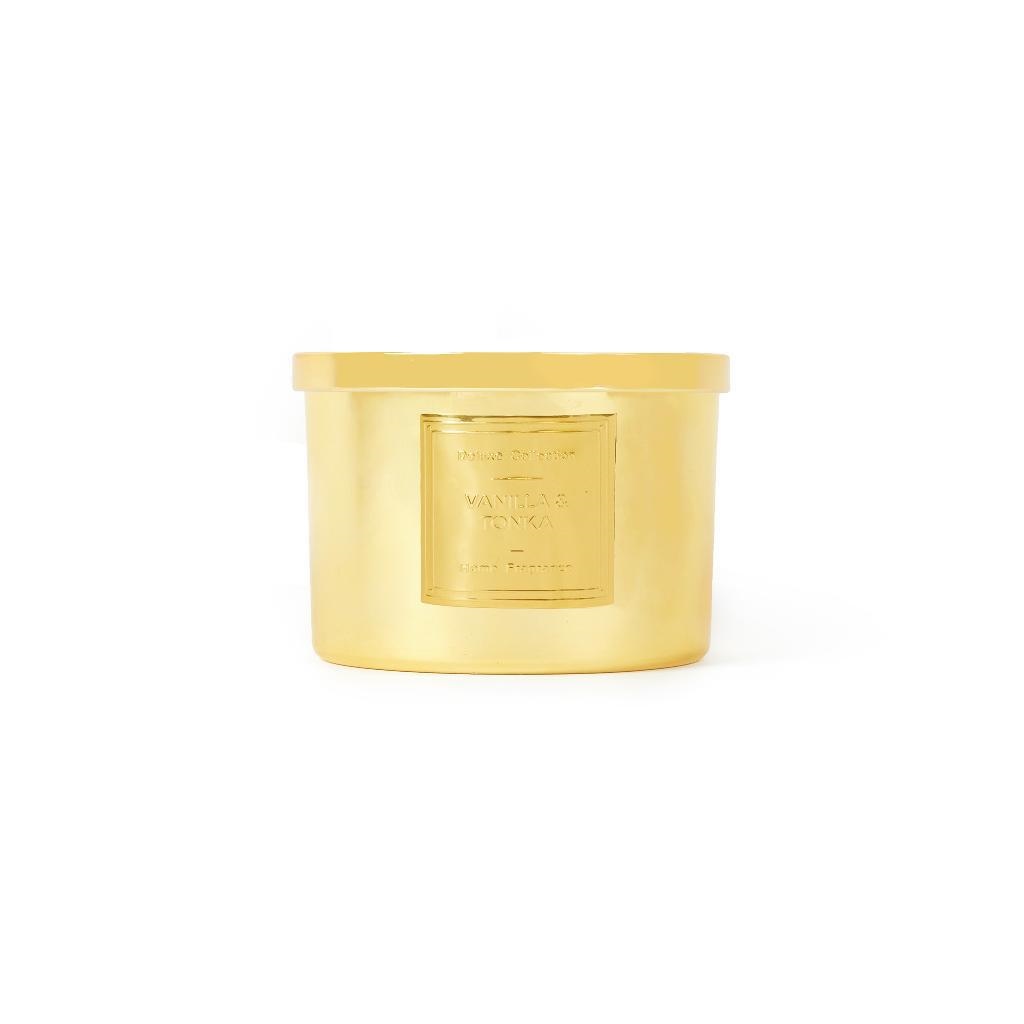 CANDELA LINGOTTO DORATO D.11 H.8cm IN VETRO C/COPERCHIO