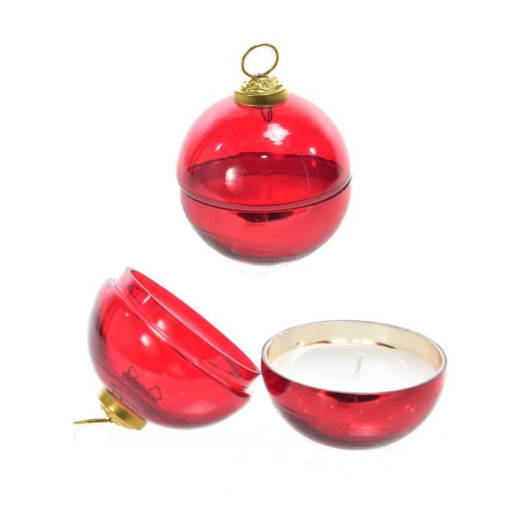 CANDELA PROFUMATA IN COFANETTO PALLA VETRO 8cm ROSSO