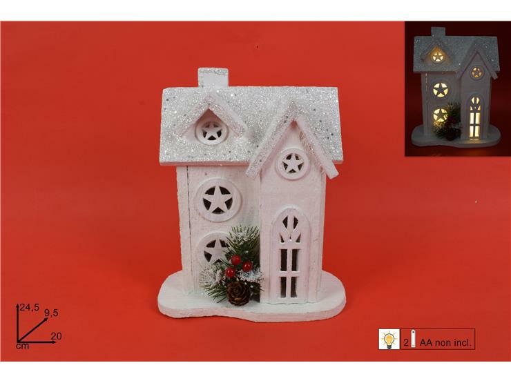 CASETTA LEGNO BIANCA C/LUCI GLITTER BIANCO