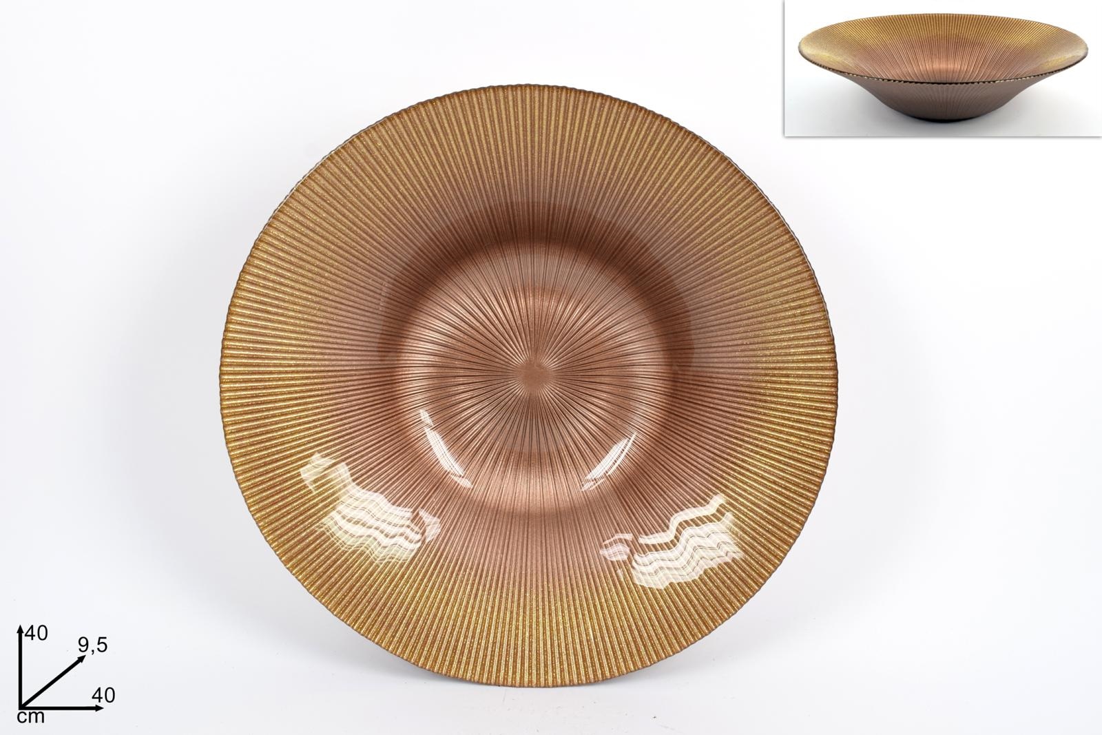 CENTROTAVOLA VETRO 40cm MARRONE GLITTER ORO