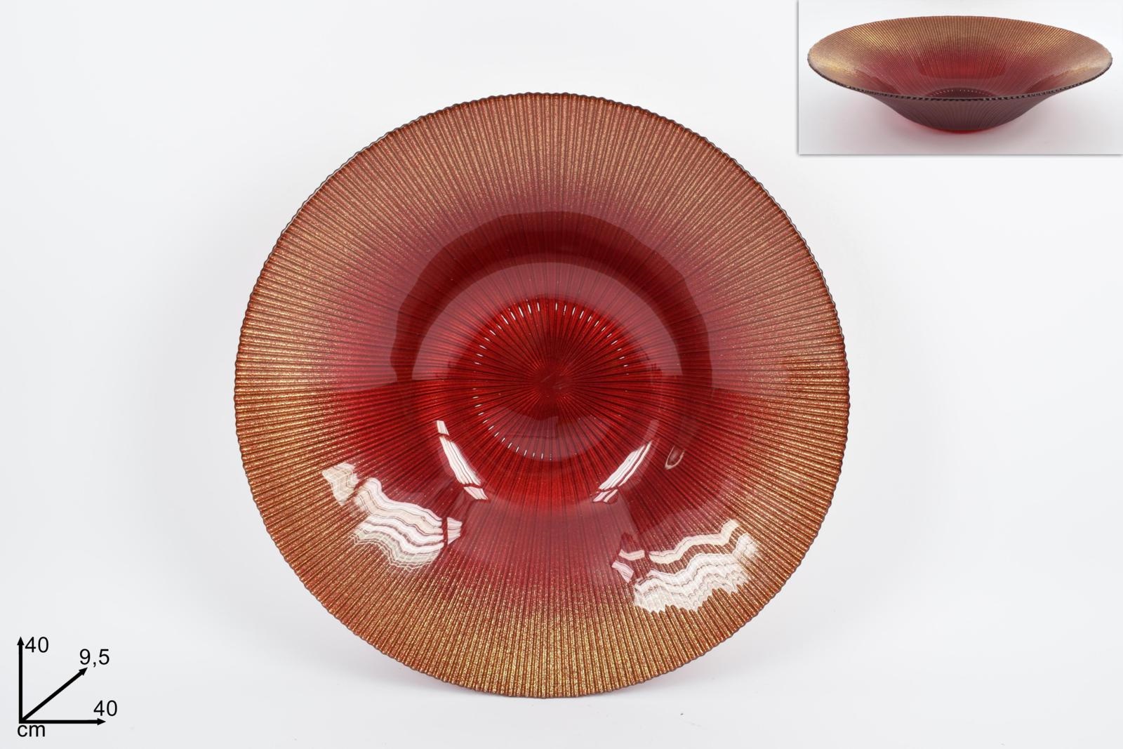 CENTROTAVOLA VETRO 40cm ROSSO GLITTER ORO