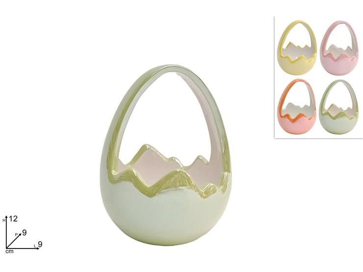 CESTINO CERAMICA A UOVO 12cm C/MANICO EFFETTO PERLATO