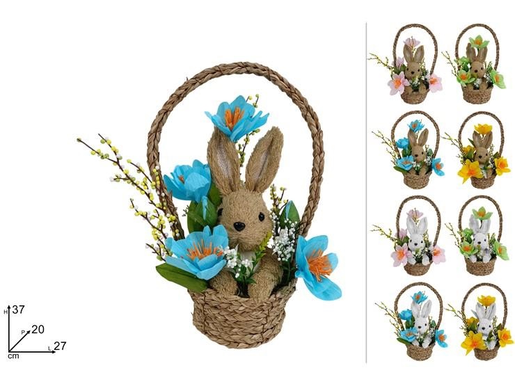 CESTINO DECORATO C/FIORI E CONIGLIO ASS.