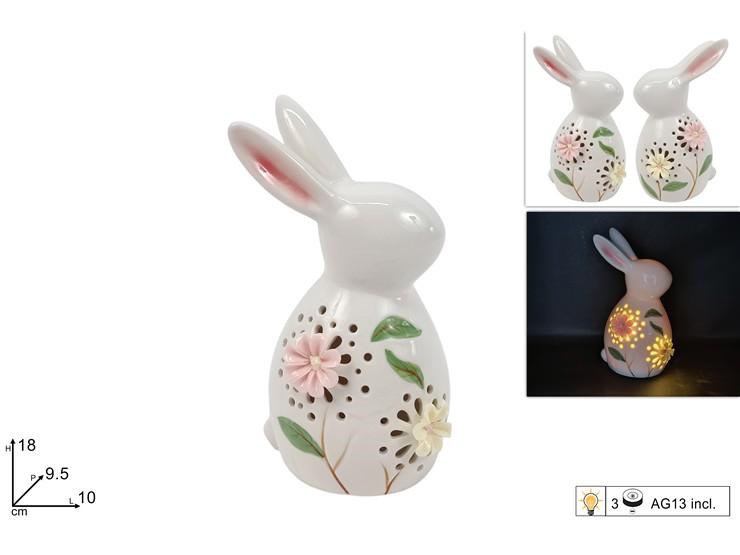 CONIGLIO 18cm CERAMICA C/LUCE ASS.