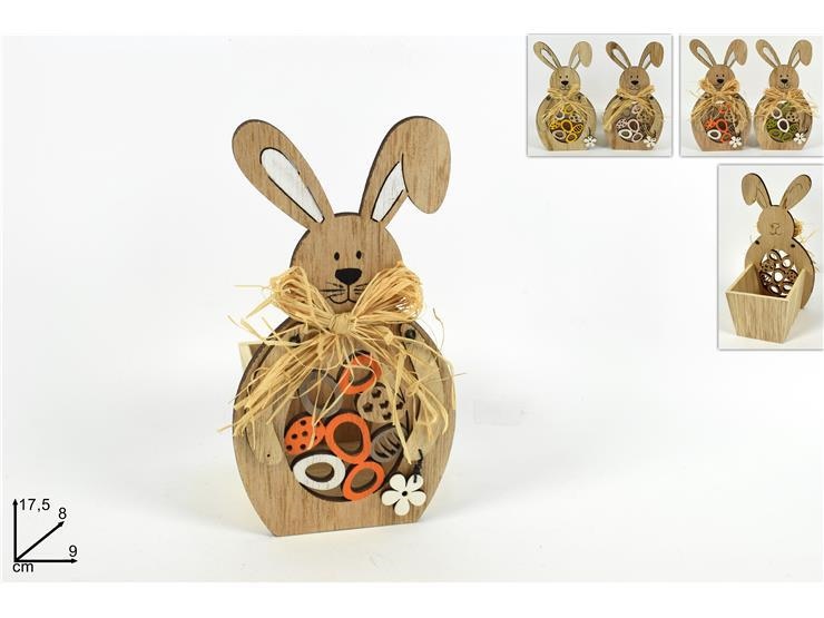 CONIGLIO LEGNO C/VASO 17cm ASS.
