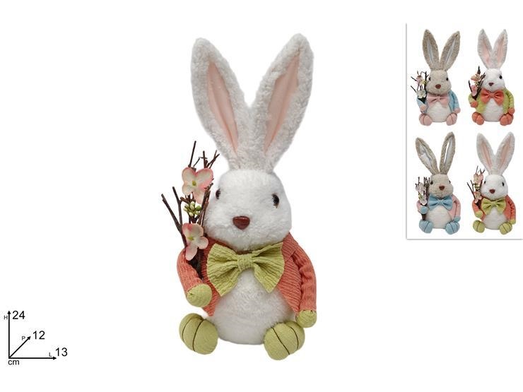 CONIGLIO PELLICCIA 24cm CON FIORI PESCO