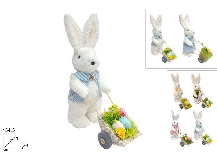 CONIGLIO PELLICCIA C/CARRETTO 34cm COL.ASS.