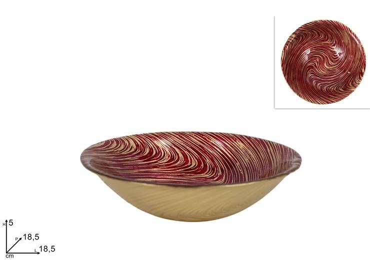 COPPETTA VETRO DECORO VORTICE ROSSO/ORO 18cm