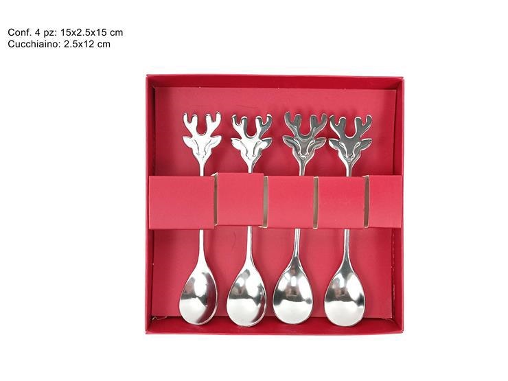 CUCCHIAINI NATALE SILVER TESTA RENNA 4pz