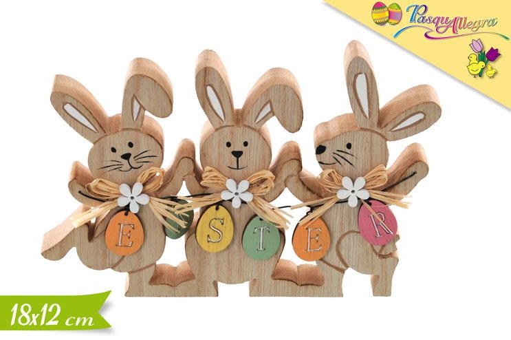 DECORAZIONE CONIGLIETTI LEGNO 18x12cm