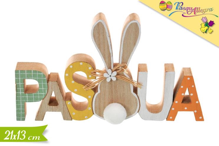 DECORAZIONE SCRITTA PASQUA LEGNO 21x13cm