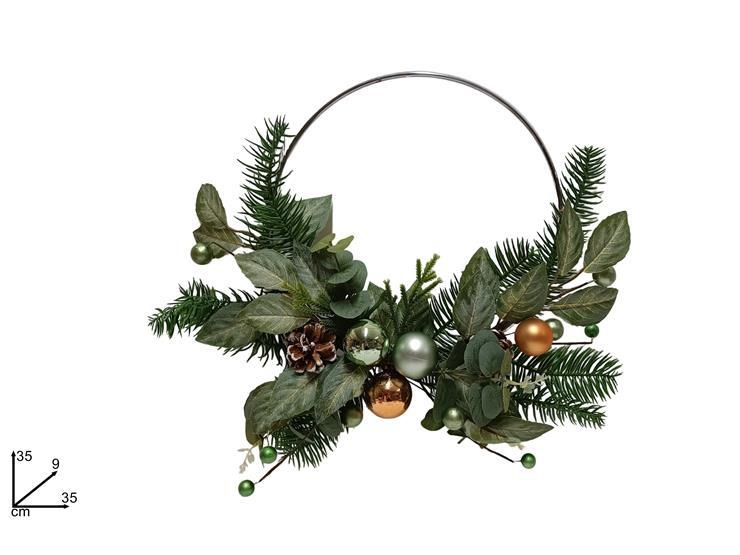 DIETROPORTA C/FOGLIE E PIGNE 35cm PALLE ORO/VERDE
