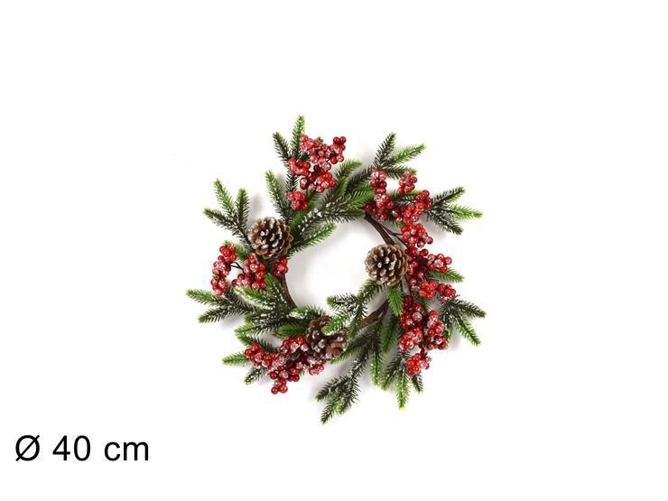 DIETROPORTA TONDO 40cm C/PIGNE E BACCHE