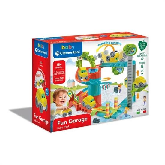 Un garage ricco di attività meccaniche per far scivolare la macchinina lungo il percorso, risalire, riscendere e non smettere mai di divertirsi!