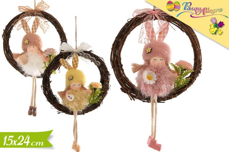 GHIRLANDA C/BAMBOLINA CONIGLIETTO 24cm ASS.