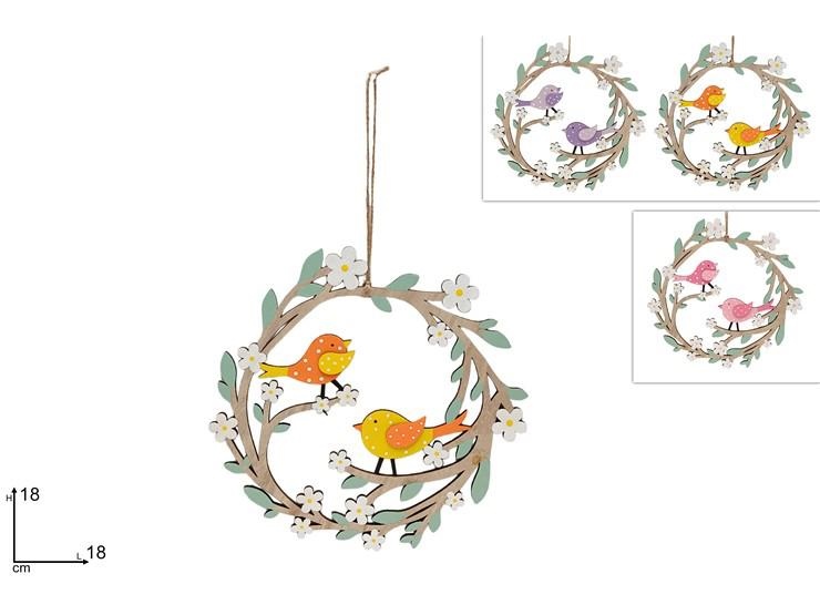 GHIRLANDA LEGNO C/FIORI E UCCELLINI 25cm