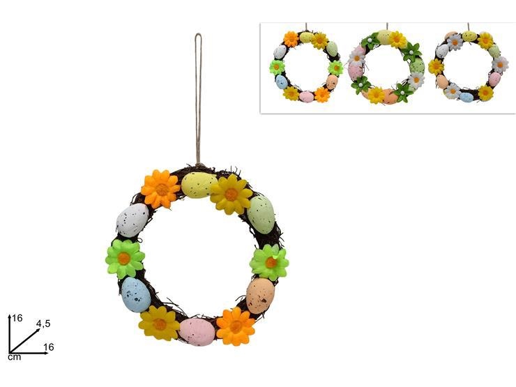 GHIRLANDA PASQUA 16cm C/MARGHERITE E UOVA