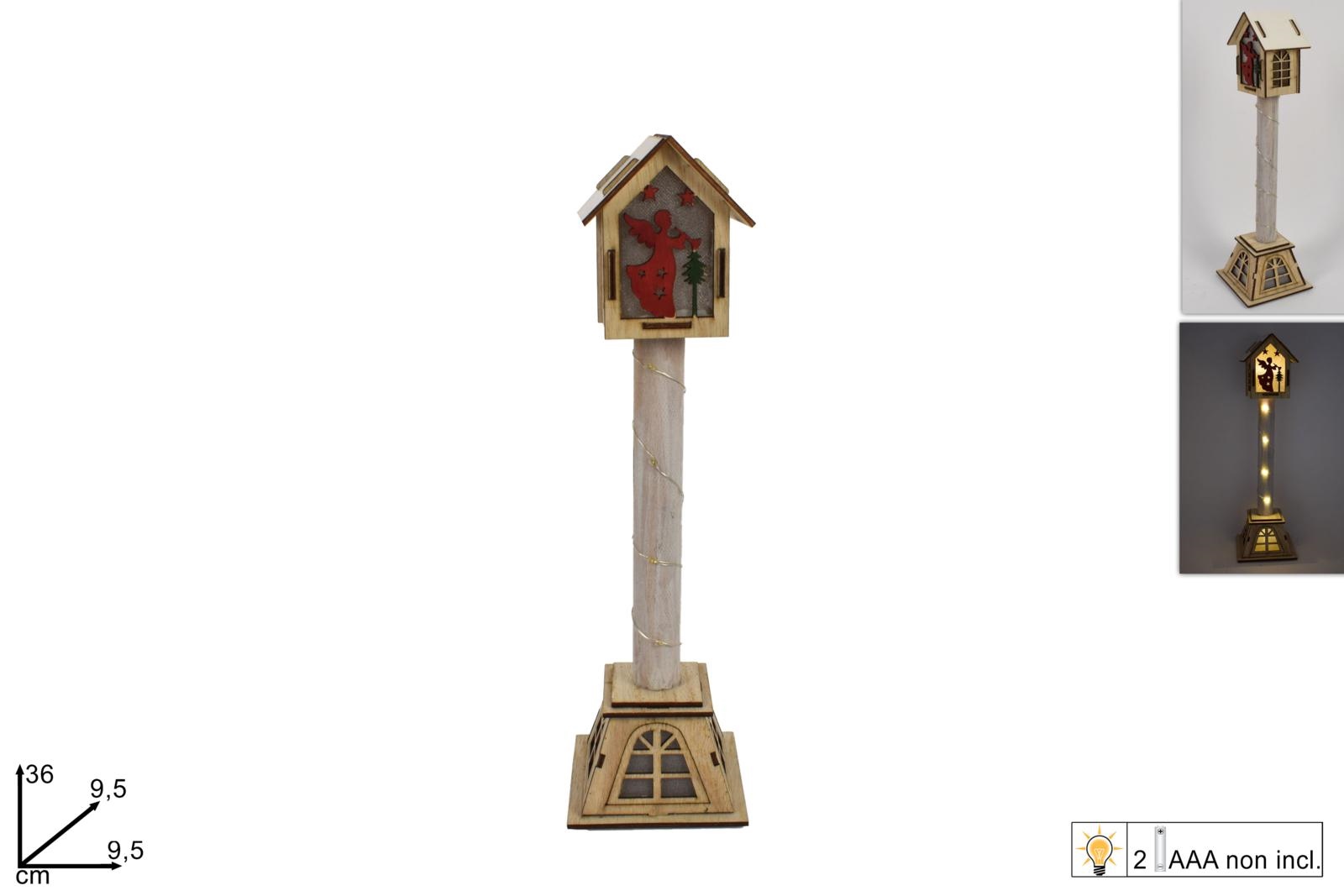 LAMPIONE LEGNO 36cm C/CASETTA E LUCE