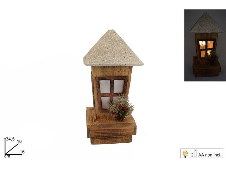 LANTERNA LEGNO GLITTER ORO C/LUCI