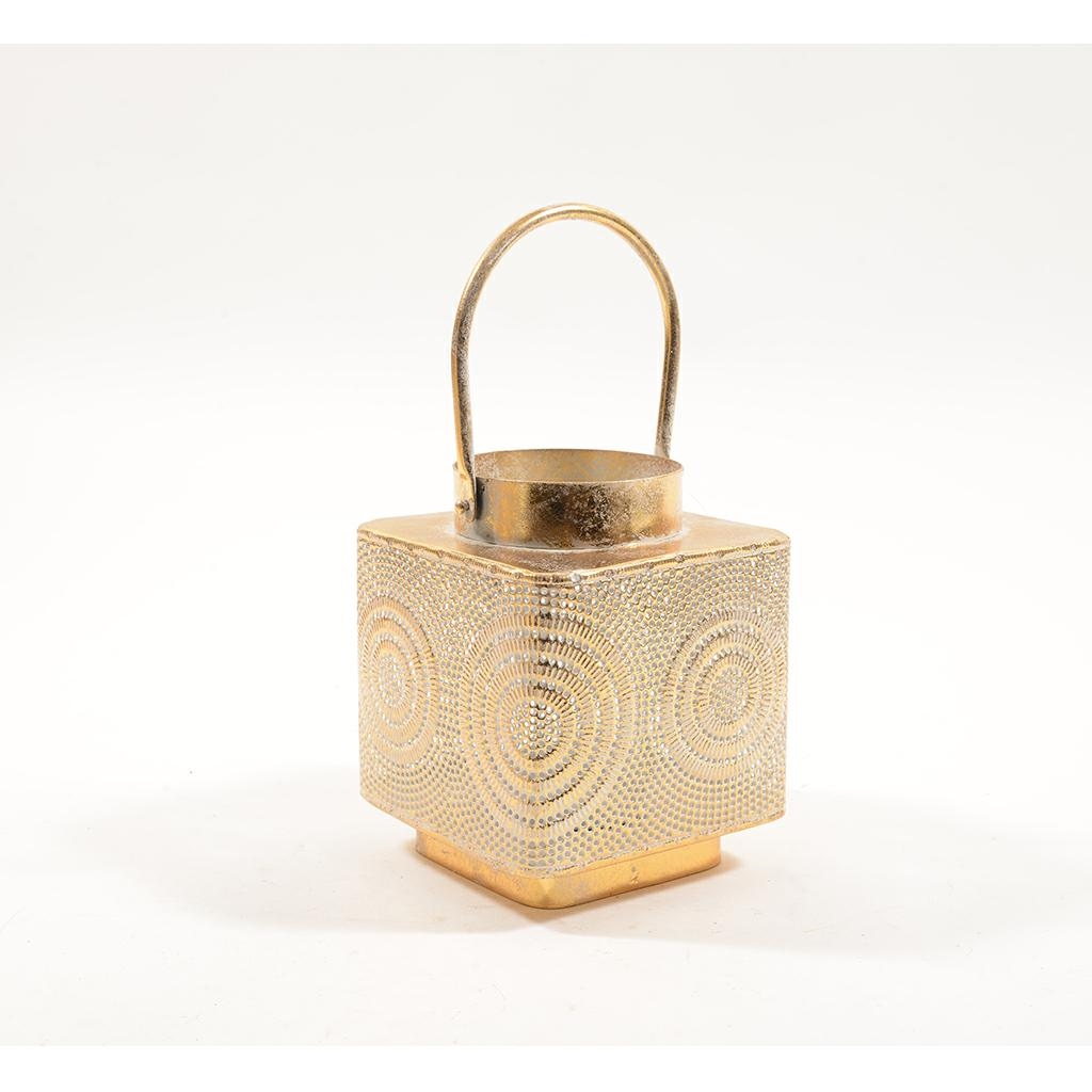 LANTERNA PORTACANDELA ORO METALLO 16x16x19cm