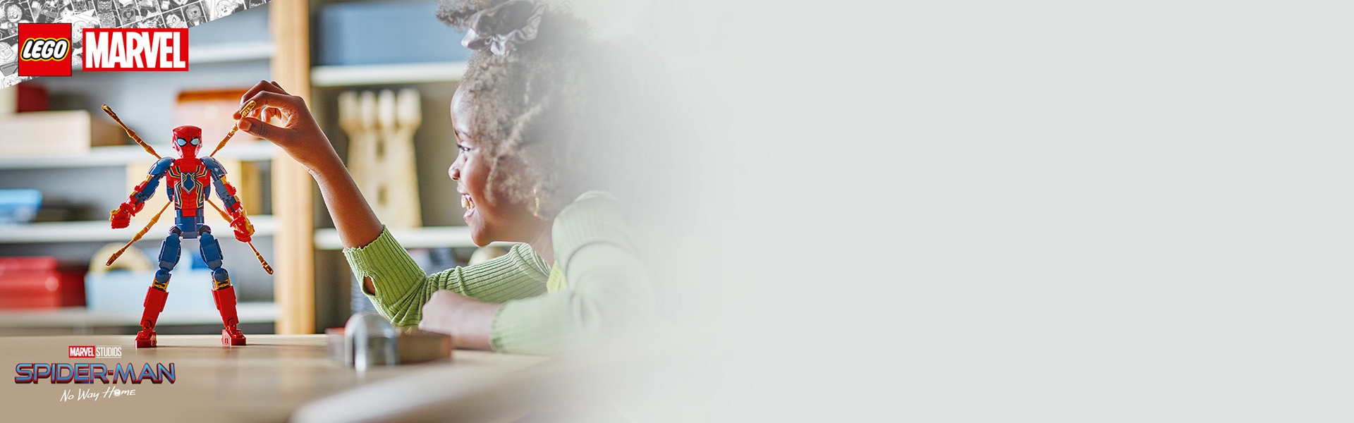 Dai vita all’azione del supereroe dei film Marvel con il personaggio costruibile di Iron Spider-Man autenticamente dettagliato e completamente articolato (76298) per bambini dagli 8 anni in su.