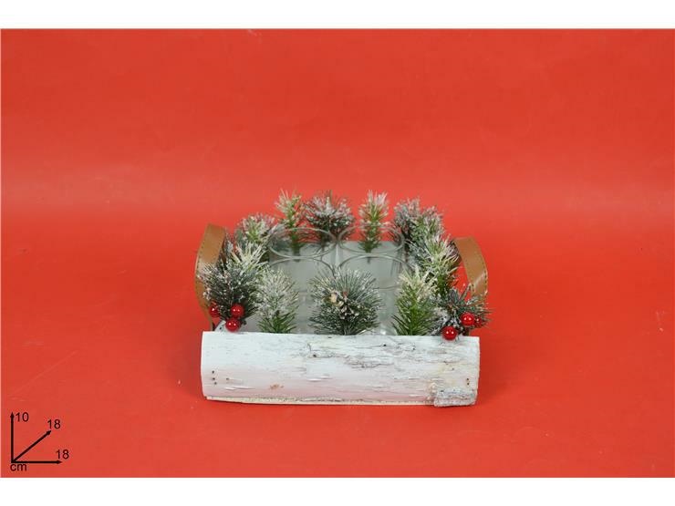 P/CANDELA BIANCO 4 POSTI 18cm C/RAMI INNEVATI