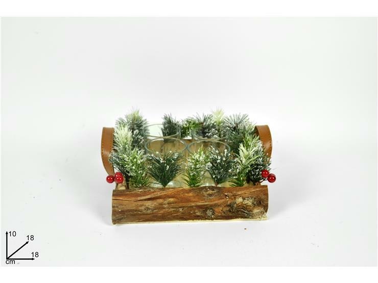P/CANDELA NATURALE 4 POSTI 18cm C/RAMI INNEVATI