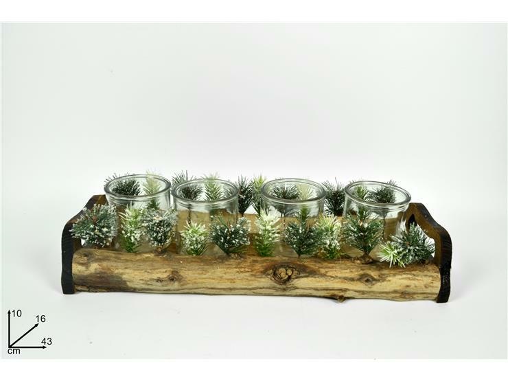 P/CANDELA NATURALE 4 POSTI RAMI INNEVATI